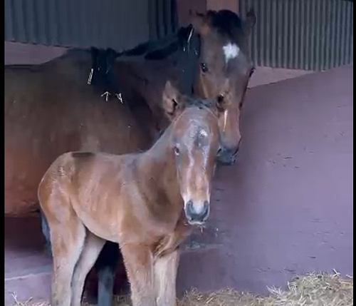 A beautiful Pomodoro filly, bred out of the Dynasty mare, Diamond League, was born at the farm this week. Here she is with her proud mother, not long after taking her first steps.