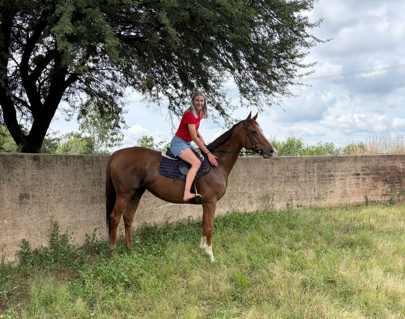 Nadia said she still smiles when she thinks about it. “I’d heard all about Pomp And Power’s quirks and how difficult he could be to manage, but I’ve always liked him and he’s been kind to me – very laid back. One day I decided, ‘today is the day,’ and told the staff I was going to see what would happen if I tried to ride him.